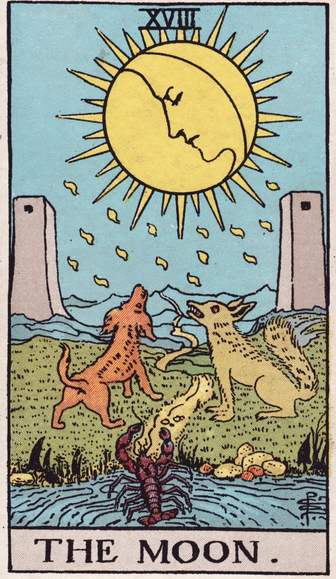 The Moon card is heavy. It has a reputation for illuminating the unknown, but it is not an easy path. The traditional Rider-Waite meaning is complex. Biddy Tarot perhaps summarizes it best: