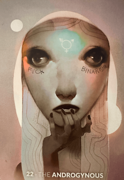 The Androgynous encompasses all things in balance, and in flow. It not just one thing - only male, only female, or one elemental aspect of life. It is all things swirling in harmony. The overall theme of this archetype is: Change and fluidity define life. In this poetic guidebook, I found this passage: